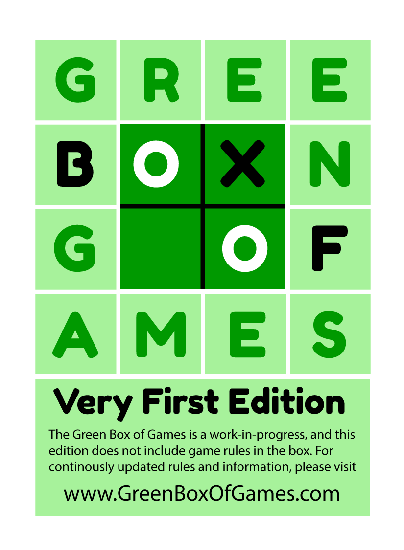 The idea behind the Green Box is to create a set of generic components that can be use to play a myriad of different games, including timeless classics and original games developed for the Box. Think of it as a deck of cards, only for board games.
