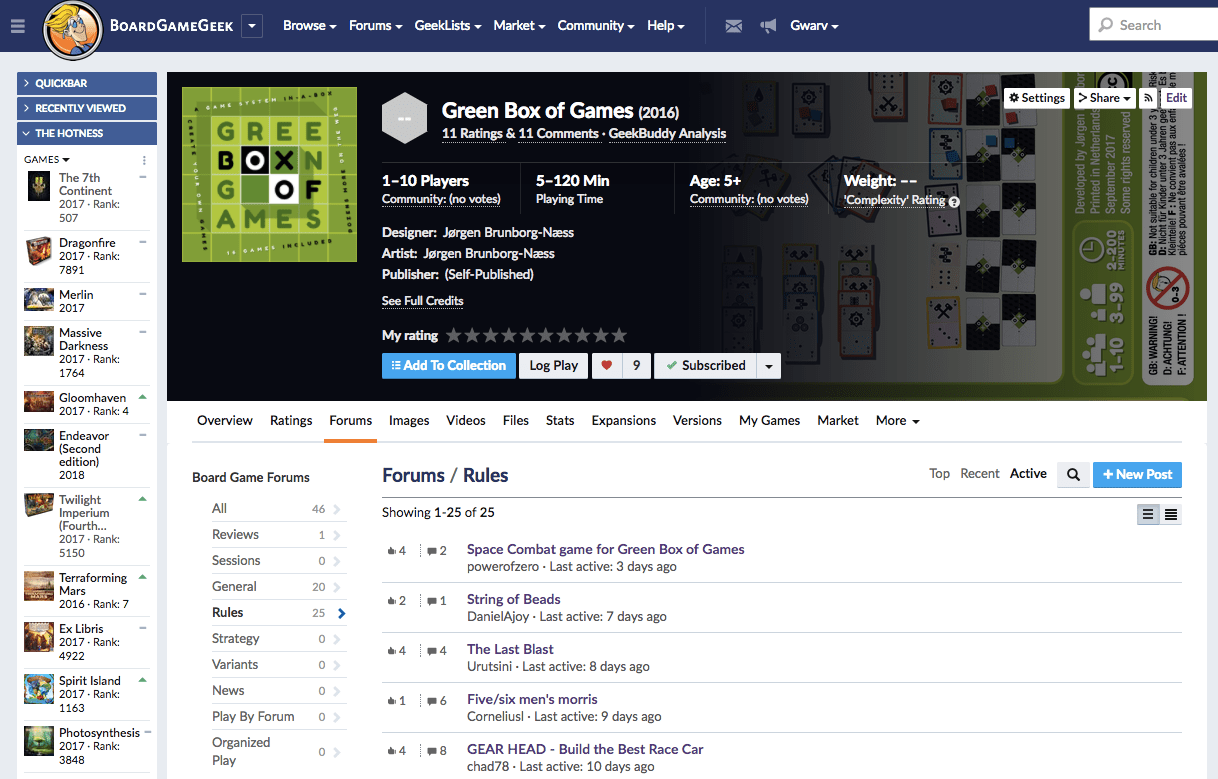 During the Kickstarter Campaign no less than 18 new games have been created or suggested for the Green Box of Games by players, backers and fans from different parts of the world. Most of them are published in the forums on BoardGameGeek, where they are also discussed and developed further.